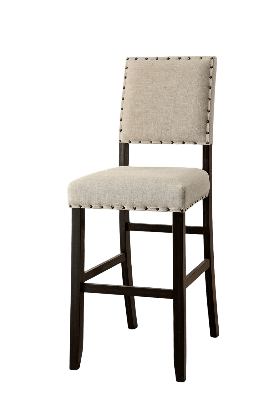 Home > Antique Black Wooden 5pc Counter Height Dining Bar Set Table And 4x Chairs Ivory Linen Like Fabric Cushions Nailhead Trim Bar Chairs
