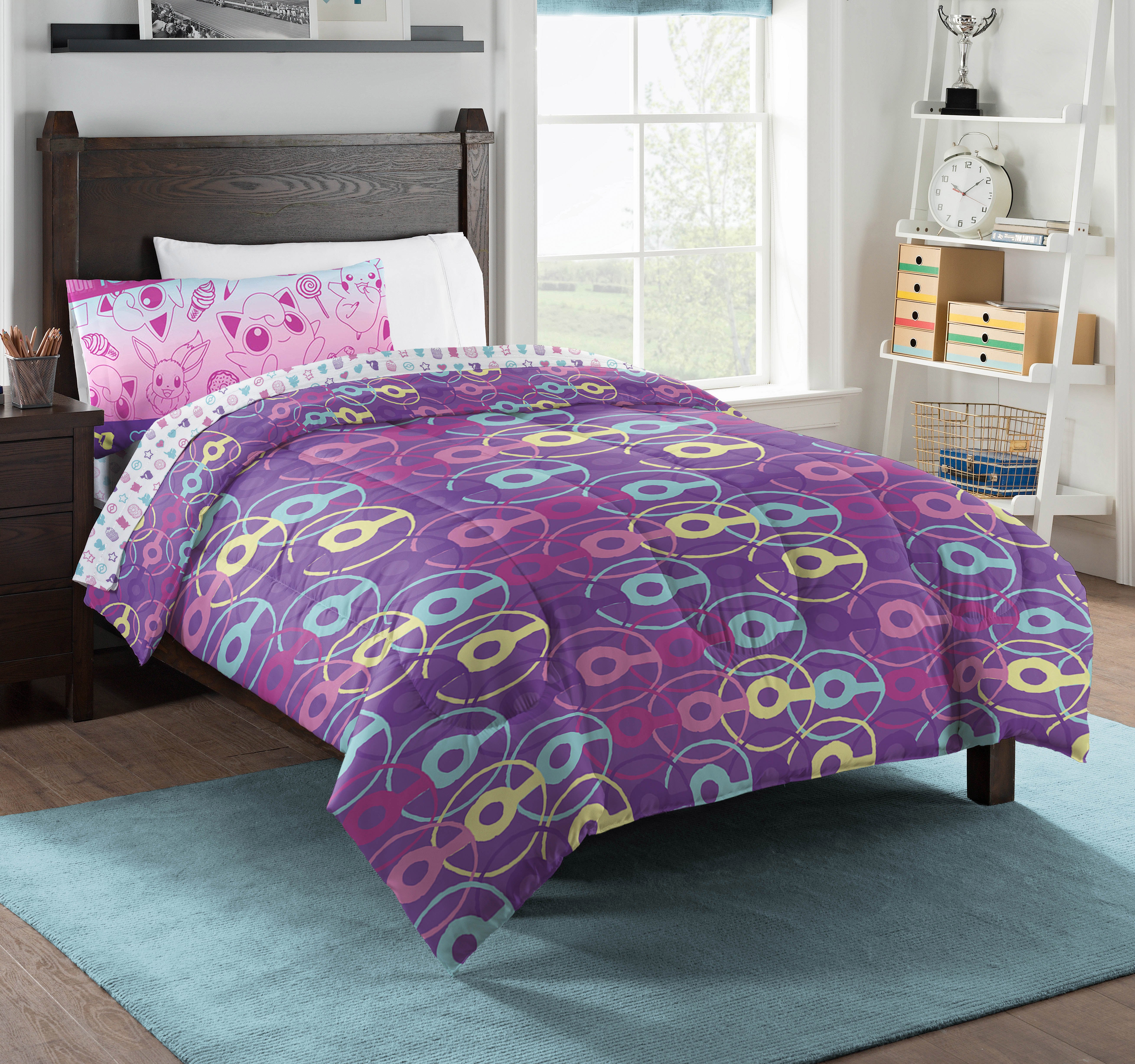 This Pokemon "Light and Sweet" Twin Size Bed in Bag Set is the perfect way to show off your true fan style when you're drifting off in bed! Featuring your child's favorite original Pokémon characters. The bed set comes with comforter, flat sheet, one fitted sheet, sham and one standard-size pillowcase, perfect for any bedroom. Catch 'Em All while dreaming in this fun five piece twin size bedding set.