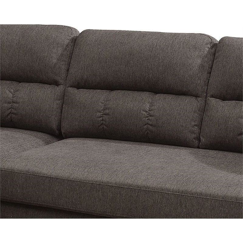 Maxime the small spaces while maintaining sleek style with this two-piece sectional, ideal for those wanting a cozy but contemporary piece to add to their living room. This reversible sectional offers selected velvet fabric upholstery, reflecting tufted back cushions, rolled armrests, and wooden-tapered legs that complement the look. Available in Slate Gray, Tan Brown, and Paprika Red finish.
